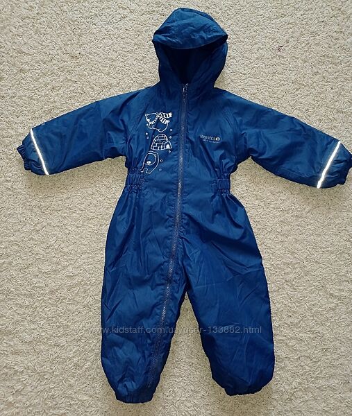 В ідеальному стані, як новий. Дуже подобається що на руках, ногах і на талії резинка від задування. Спинка має флісову підкладку.Верхня тканина цупка, не тоненька.