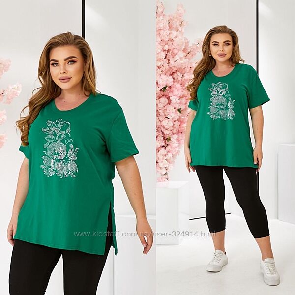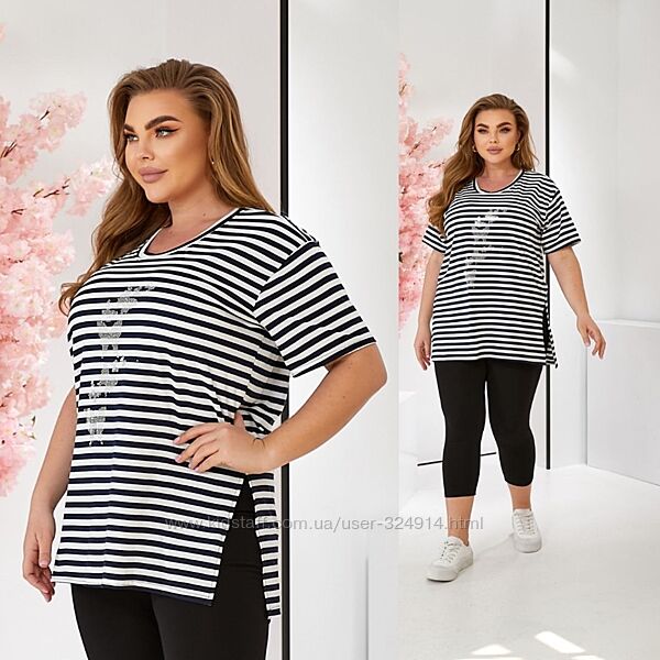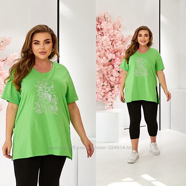 Футболка свободного кроя, удобная, легкая, по бокам разрезы (это очень удобно) Дополнит Ваш весенний образ.