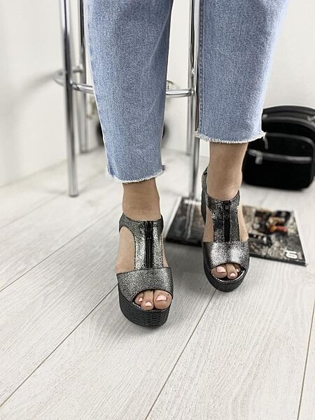 Подробное описание: Босоножки женские INJERS 423 серебряные лето, кожа-сатин натуральная 971