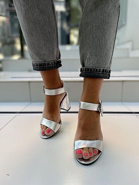 Босоножки женские MISSKA D287-V2340 серебряные лето, эко-кожа 4452