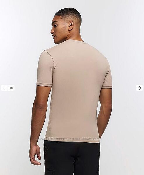 River Island Stone muscle fit t-shirt Носиться по тілу, розмір м. Можна на с. Приємна, м´яка тканина, що тягнеться.НОГ — 43, тягнеться до 66, плечі — 40, довжина рукава — 20, 5, довжина — 69 см.