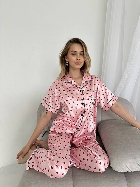 Ніжна шовкова піжама з серцями❤️Тканина: шовк Армані