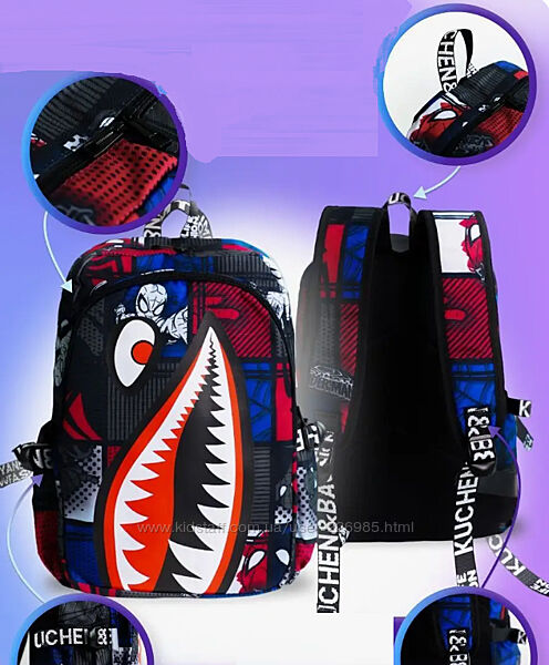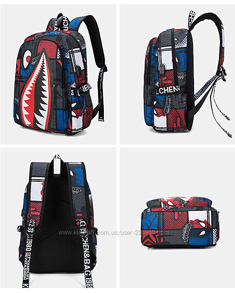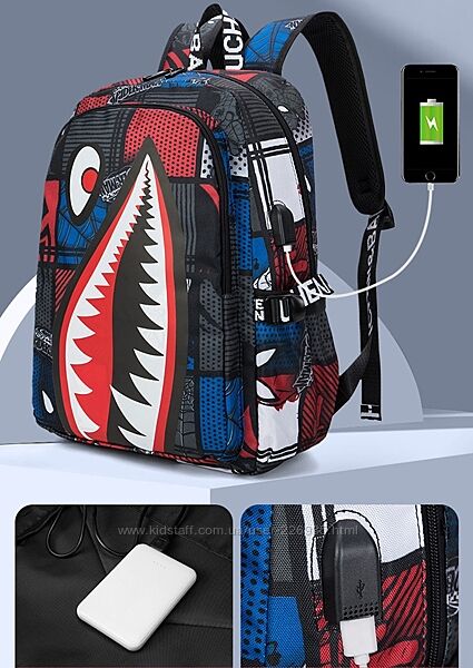 Подробное описание: Шкільний стильний універсальний рюкзак Shark з USB-портом для 5-11 класу
