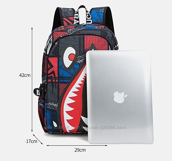 Шкільний універсальний рюкзак з USB-портом Shark для середньої та старшої школи — цей крутий молодіжний рюкзак підходить для повсякденного використання: навчання, прогулянок, походів на тренування, у басейн, для виїздів на природу.Завдяки своєму правильному розміру рюкзак вміщує в себе не тільки безліч підручників, а й ноутбук, спортивну форму, а також поміститься папка формату А4.