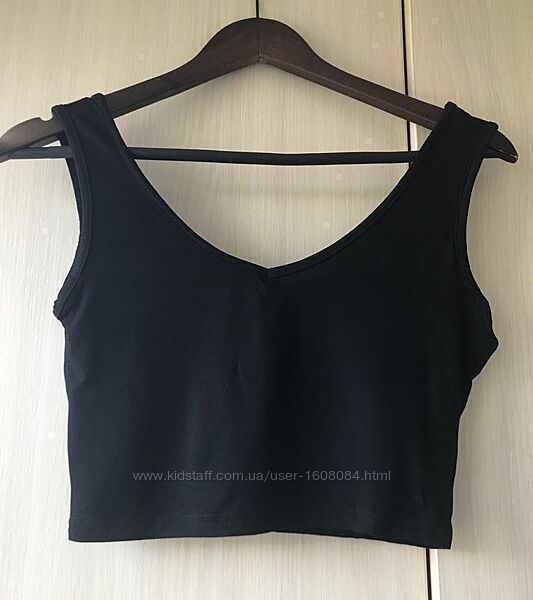 Бренд MissguidedЧорний короткий топ на широких бретелях. Матеріал - шовковистий трикотаж, віскоза. Вироблено у Великобританії.