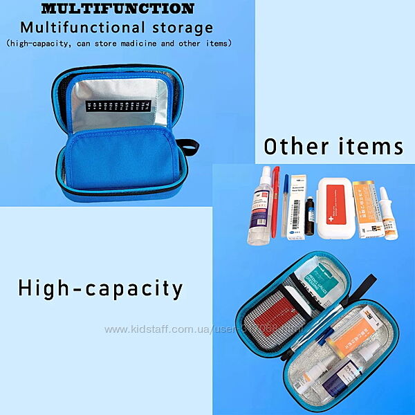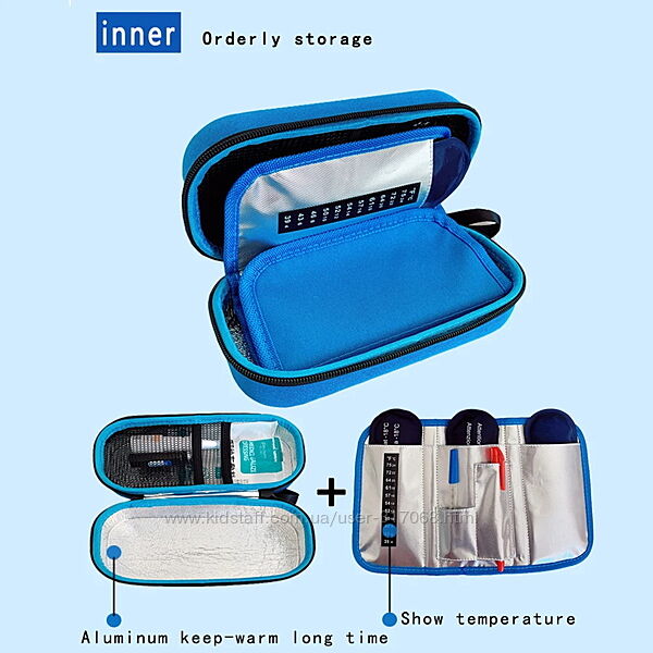 Термочохол має жорсткий каркас, що запобігає ударам, падінням і пошкодженню його вмісту. Пенал зручний для транспортування та зберігання інсуліну та решти приладдя для контролю цукру (глюкометр, тест-смужки, декстроза і т.д.)