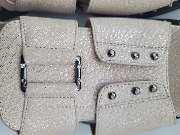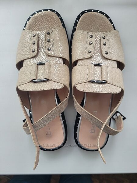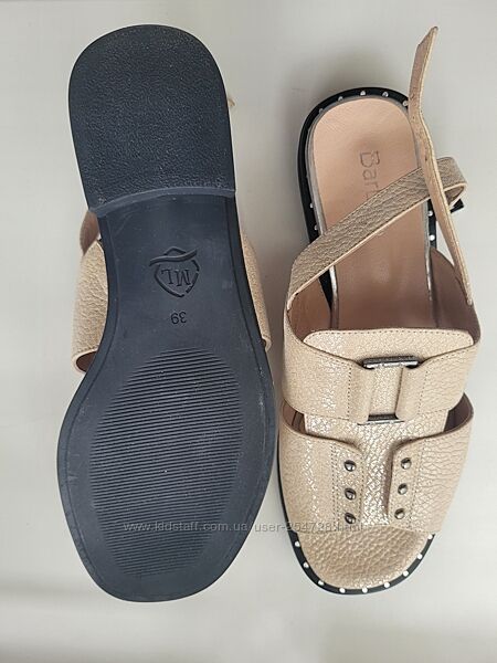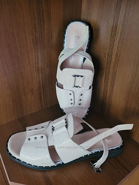 Босоніжки шкіряні, ТМ Barbeta,Туреччина, нові. Розмір 39, устілка 25 см ( з чорним кантиком майже 26). На првому не достає одного камінчика в пряжці, не дуже видно (див фото). Ціна 920 грн.