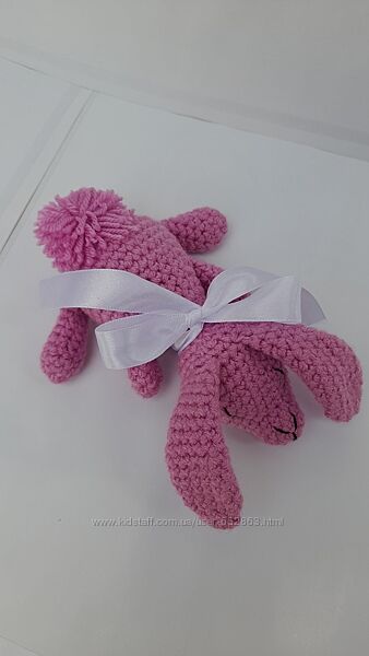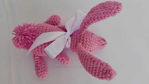 Подробное описание: Вязаная игрушка Зайка сплюшка с бантиком ручная работа мягкая игрушка