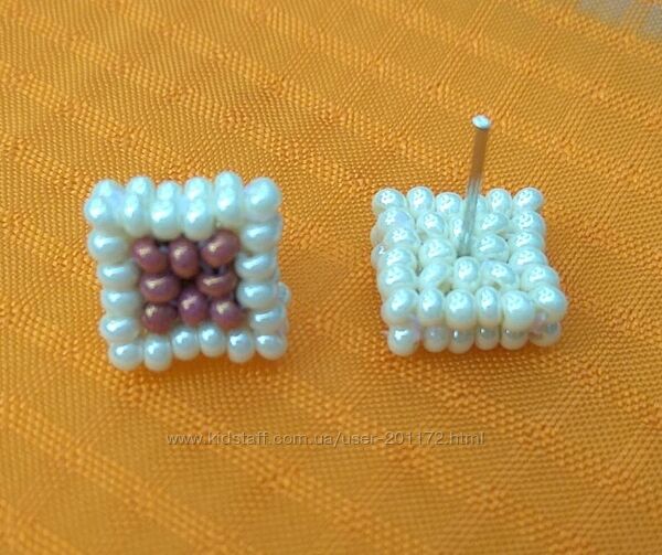 5,6. Сережки "Квадратик"- діаметр 1 см., силіконовий фіксатор. Ціна - 55 грн. Виготовлення на заказ. Різноманітні кольори і їх поєднання. Строк виготовлення - 1 день. Закажіть собі прикрасу під кожний наряд, це дуже органічно і елегантно.