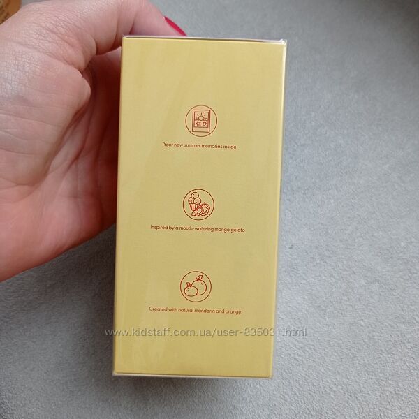 Фруктова, квіткова та гурманська насолода! Неповторний акорд мангового джелато подарує тобі іскри свіжості та яскраве світло тропічного сонця, які залишаться з тобою надовго.ВЕРХНІ НОТИ: Манго, Мандарин, Маракуя