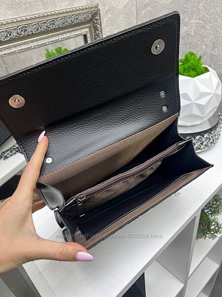 Одне відділення,поділене навпіл перегородкою на блискавці. Усередині відкрита кишеня. Довжина ланцюжка 125 см .
