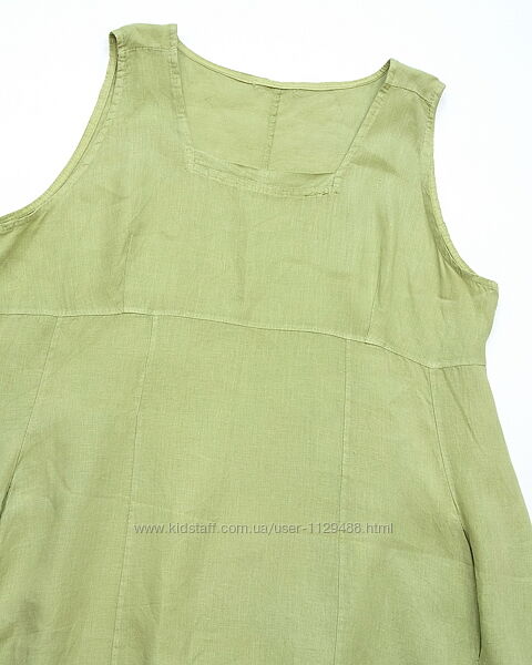 Легкое, эффектное, выполнено из натуральной дышащей ткани свежего лаймового цвета, не жаркое, очень приятное к телу. Крой свободный, форма бочонок, есть карманы.