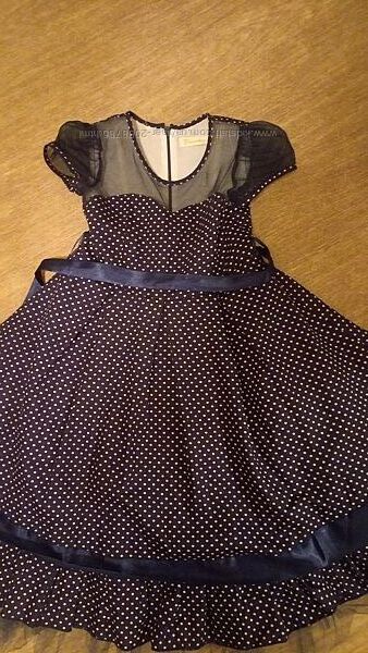Нарядное платье для девочки с пышной юбкой BotaniqueПод грудью на завышенной талии на спинке завязывается бантом тканевый пояс.