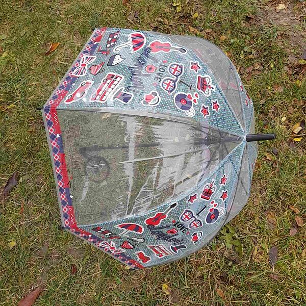 Подробное описание: Зонт зонтик трость прозрачный купол с рисунком Love London полуавтомат