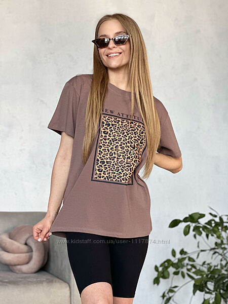 Футболка з короткими рукавами та округлим вирізом дозволяє тілу дихати в жаркі літні дні, а леопардовий принт додає модний акцент в образ. Велосипедки щільно облягають фігуру, моделюють силует і не обмежують рухів, що робить їх ідеальним вибором для прогулянок або тренувань.