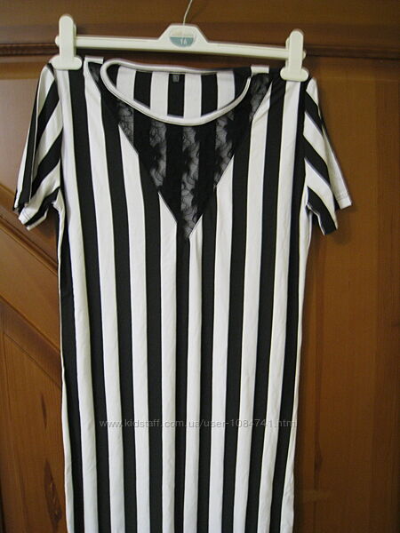 новое летнее платье-туника в полоску, на украинский р.46, написан размер L, Китай.В черно-белую широкую полоску облегает фигуру супер тянется.