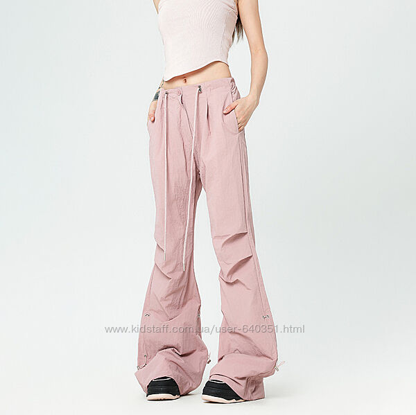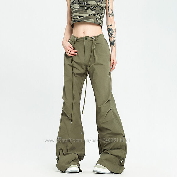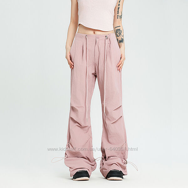 Подробное описание: Чорні штани парашути жіночі повітряні карго болотні з карманами оверсайз