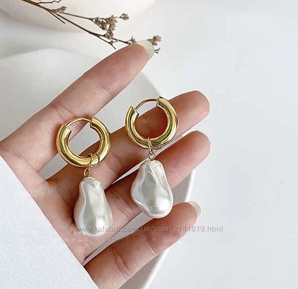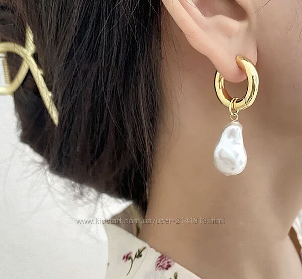 Подробное описание: Трендовые серьги кольца с жемчугом, сережки барочный жемчуг