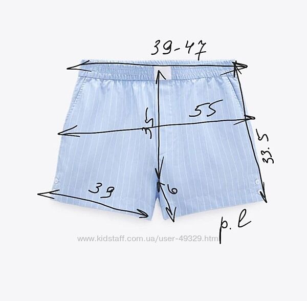Літні трендові шорти Zara в тонку смужку. Шорти із середньою посадкою. Еластичний пояс. Бічні кишені, декоративні прорізні кишені позаду.Розрізи та гудзики з боків знизу. 100% бавовна. Розмір L. Заміри на