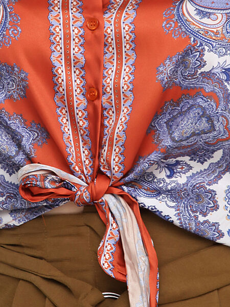 Топ з атласної тканини з V-подібним вирізом спереду та ззаду, регульованими тонкими бретельками, гудзиками спереду та зав´язкою по низу.Заміри: надаємо по запиту