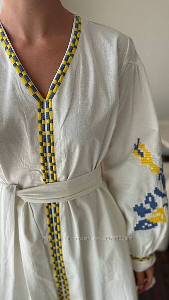 Подробное описание: Жіноча вишита сукня довга плаття з вишивкою вишиванка біла з поясом