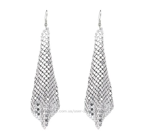 Стильные серьги кольчуга серебряного цвета.Длина сережек : 5 см