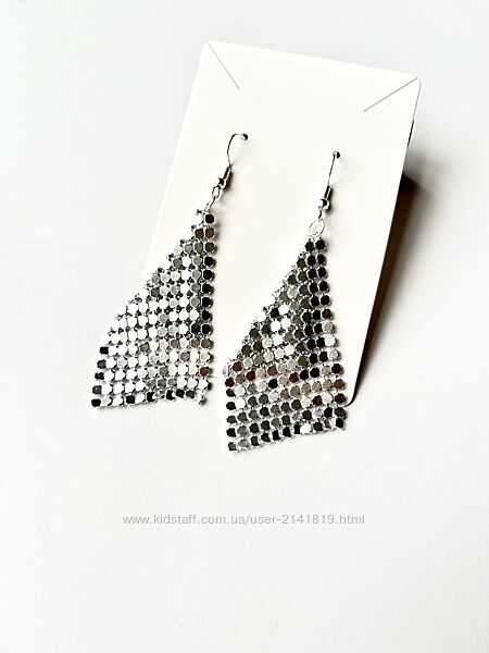 Подробное описание: Сережки кольчуга серебро, металлические серьги сетка, серьги кольчуга