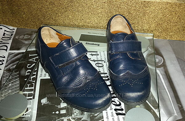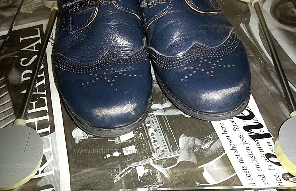 Обувались пару тройку раз, но носки туфель «обновили» сразу. Думаю, если использовать крем, это исправит ситуацию. В целом в хорошем состоянии (см. фото). Элемент липучки позволяет регулировать полноту и быстро справиться с обувью ребёнку самостоятельно. Пятка и носок имеют форму, смотрятся стильно и аккуратно.