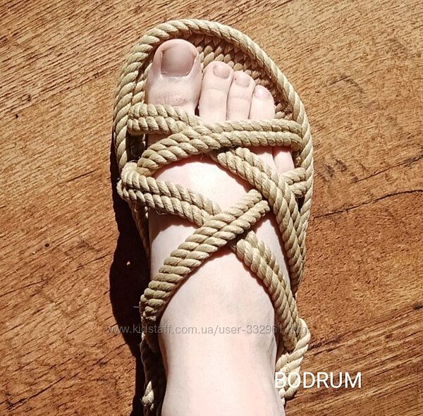 сандали Bohonomadмотузкові сандалі ручна робота, оригінальні. є в кольорах чорний, червоний, олівковий(хакі), бежевий, кольорови, є 4 моделі. Підошва плотна, на додаткові питання відповім.
