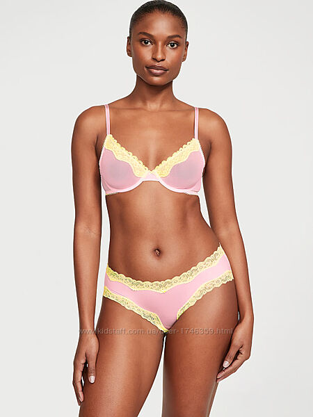 VICTORIA´S SECRET Tease Unlined Demi Bra.Прозора сітка оздоблена контрастним квітковим мереживом.