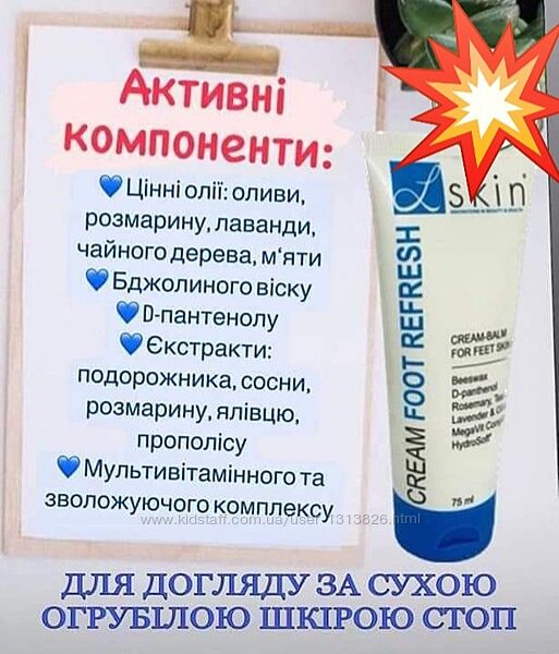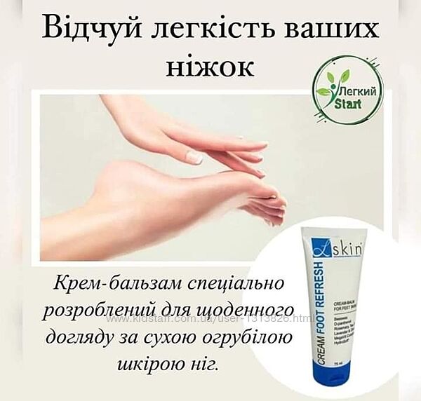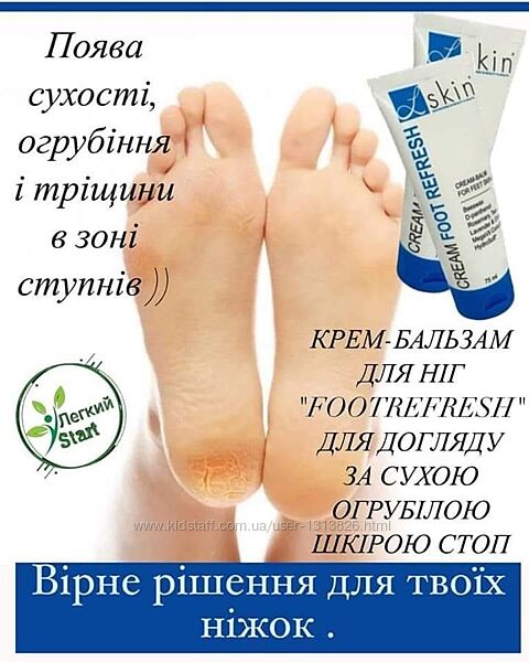 КРЕМ-БАЛЬЗАМ ДЛЯ НІГ "FOOTREFRESH" ДЛЯ ДОГЛЯДУ ЗА СУХОЮ ОГРУБІЛОЮ ШКІРОЮ СТОП СЕРІЇ L´SKIN®, 75 мл. 194 грн.
