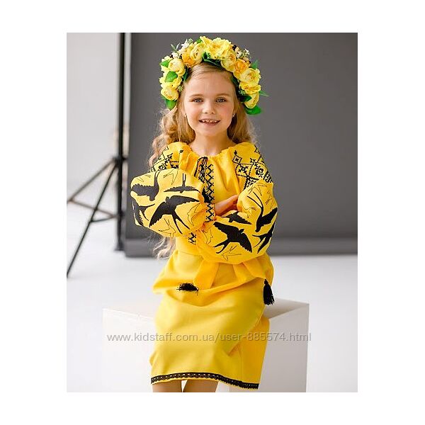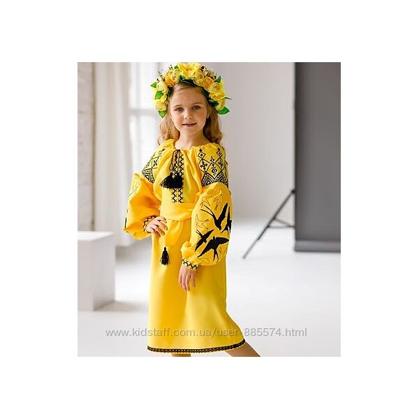 Подробное описание: Вишивана сукня. Вишита сукня для дівчинки жовта Ластівки
