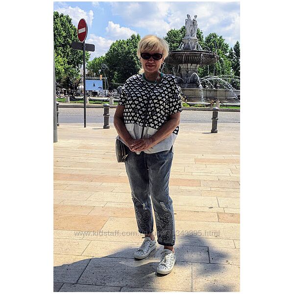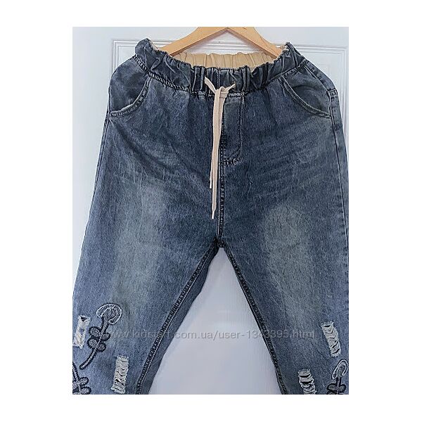 Джинси бойфренд з вишивкою - 100% Каттон(щільність нижа за середню)Вказано розмір L, за мірками та по крою краще сяде на розмір М(модель на фото має розмір М)
