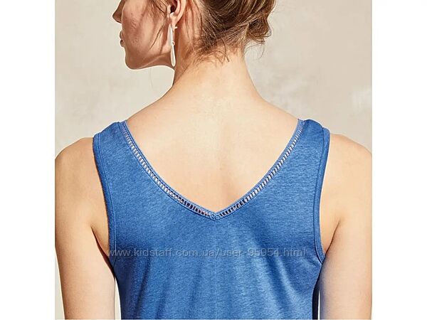 Повітряний, легкий та якісний матеріал із льону та віскози. З V-подібним вирізом спереду та ззаду. З модною оздобою по горловині. Склад: 53% льон, 47% віскоза