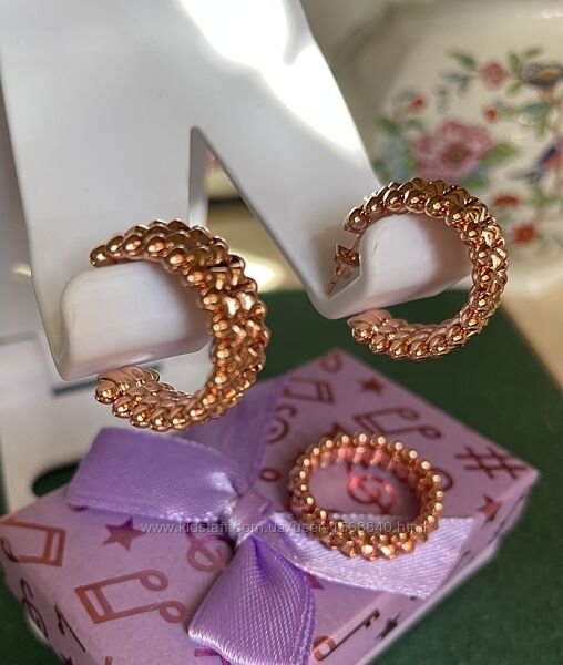 Новий елегантний та трендовий комплект сережок та каблучки в стилі Clash de Cartier від Cartier, головний аксесуар сезону!Сережки з застібками гвіздочками, метал рожеве золото, медичний сплав.