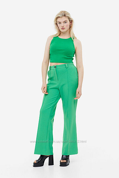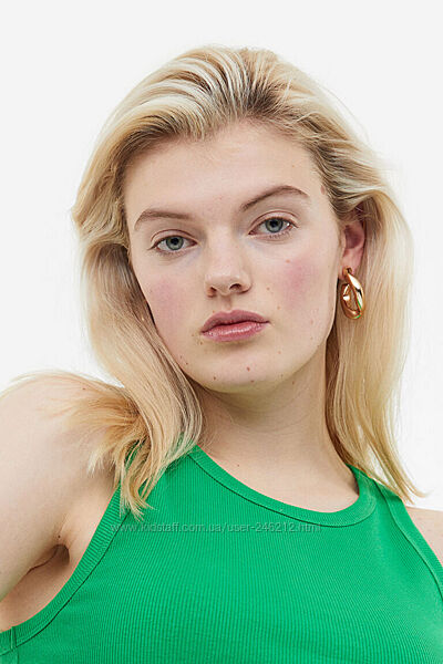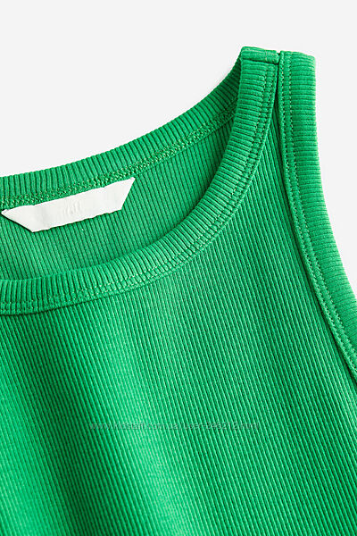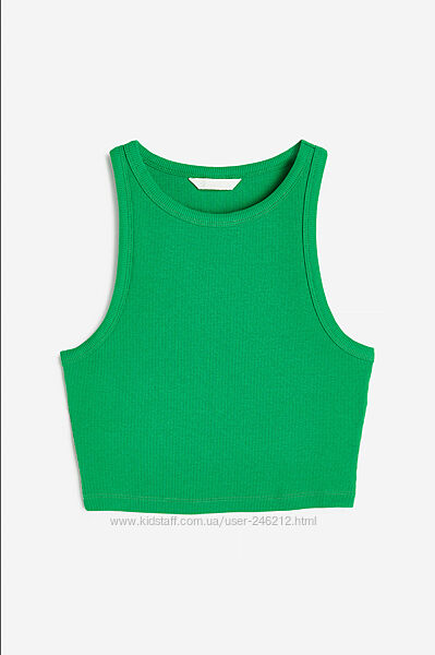 Зелений топ майка H&M.Укорочений приталений топ-майка з бавовняного трикотажу в рубчик з вузькою окантовкою по горловині та проймах.