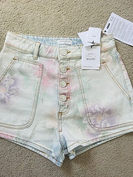 Брендові джинсові шорти найпрестижнішого французького бренду Sandro, оригінал. Квітковий принт, ексклюзив, висока талія, 36р. Якість на висоті. Купувала собі з-за кордону, але, на жаль, пролетіла з розміром . Одягла один раз на годину. В Україні ціна на шорти від 6000 грн. Ціна була 145€, я купила за 95€. 1400 грн