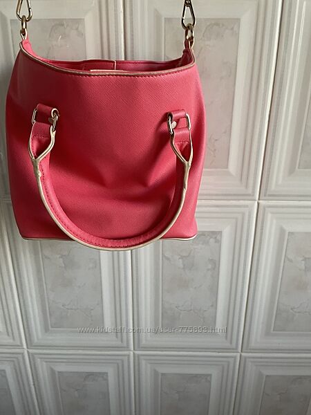 Сумка из искусственной кожи, розовая, фурнитура в золотом цвете. Размеры: длинна в верху 30 см, глубина 21 см, ширина 12,5 см., Состояние новойДругие объявления продавца