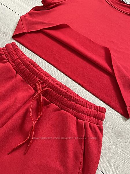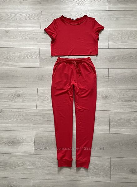 Червоний спортивний костюм, вкорочений топ штани