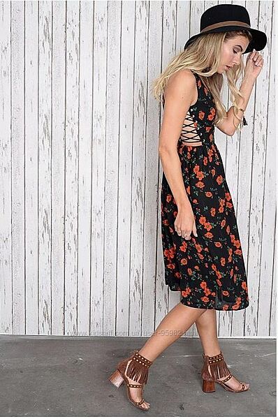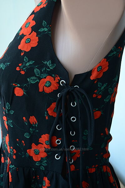Дуже красиве плаття зі шнурівкою з боків Glamorous, Засіяне маками, з легкої, повітряної тканини (так-так, поліестер буває різний), зішнурівкою, воно не буде спекотним, не паритиме, на підкладці з