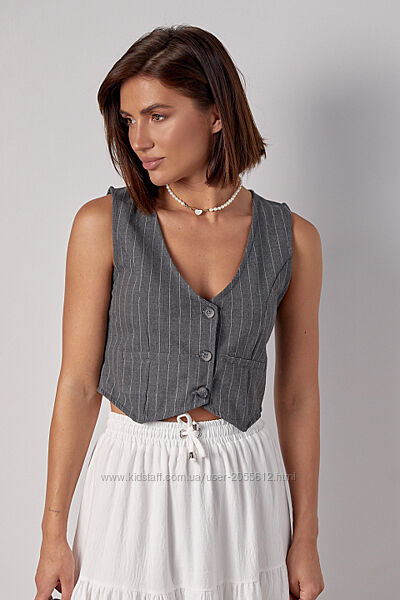 Подробное описание: Короткий жіночий жилет у смужку на гудзиках