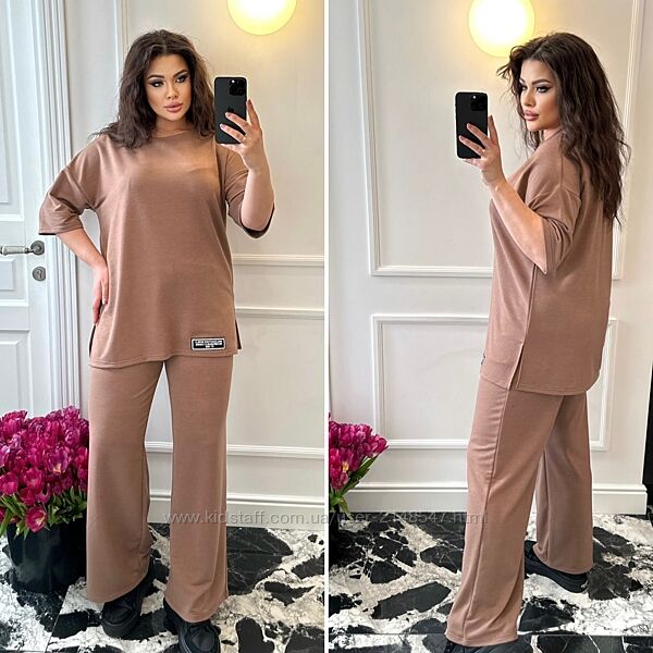 Стильний повсякденний костюм із трикотажу двонитки ( розтяжність середня).Туніка прямого вільного силуету ( на фігурі повинна бути вільною, така модель).