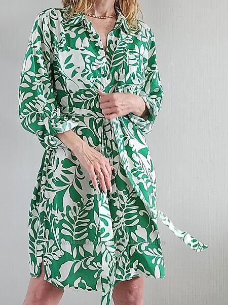 Подробное описание: Зелёное цветочное платье рубашка миди F&F