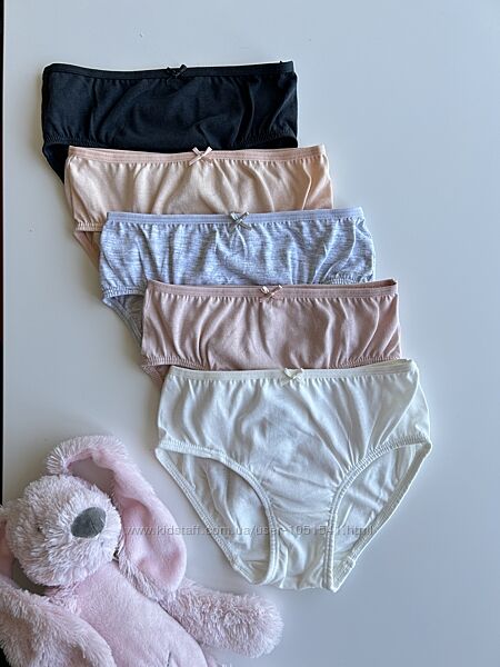 Трусики фірми H&M на дівчаток ,КОЛІР - графіт , білі , сірі , персик , пудра - однотонні . .СКЛАД 100%- бавовна , в упаковці 5 шт .