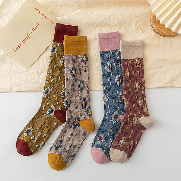 Подробное описание: Гольфи до коліна з квітам рельєфні високі шкарпетки з візерунком