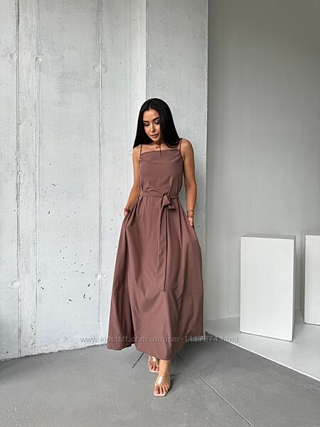Сарафан представлений у чотирьох кольорах – оливковому, чорному, бежевому та шоколадному, що дозволяє створювати різноманітні та стильні образи. Легкий, повітряний та елегантний – він неодмінно стане фаворитом, привертаючи увагу та підкреслюючи індивідуальність.