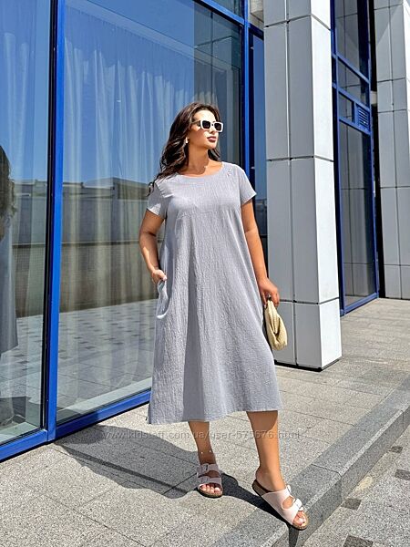Подробное описание: 48-50, 52-54, 56-58 сукня льон жатка