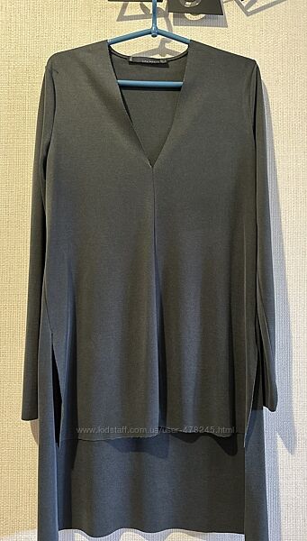 Фото6-9: туника, ТМ ZARA, р.M, трикотажное полотно, необработанный край. Ширина 49,5см., бёдра 51см., рукав 65см., плечи 41см., длина 77/95см.(перед/зад). 200грн.
