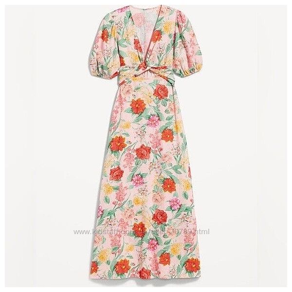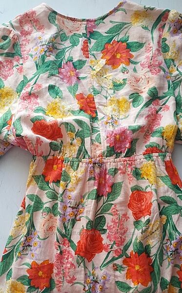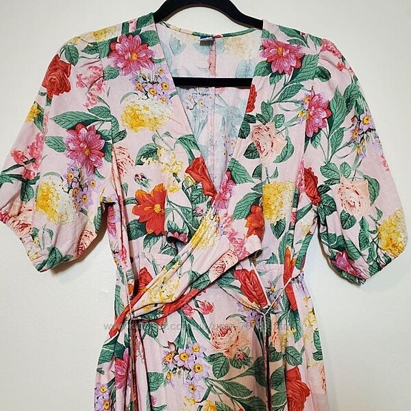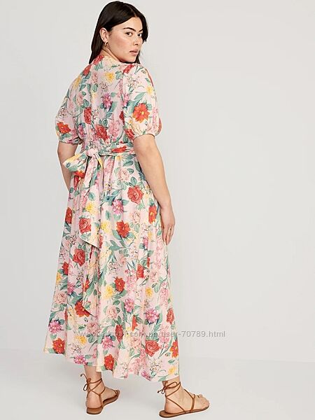 Платье OLD NAVY макси из смесового льна с цветочным принтом и запахом спереди размер 2XL. Глубокий вырез с запахом спереди (перехлест двух половинок лифа с длинным поясом). Пышные рукава на резинке. Вырез на талии. Расклешенная юбка макси. Смесь льна и вискозы с цветочным принтом. Состав: 55% лен, 45% вискоза.