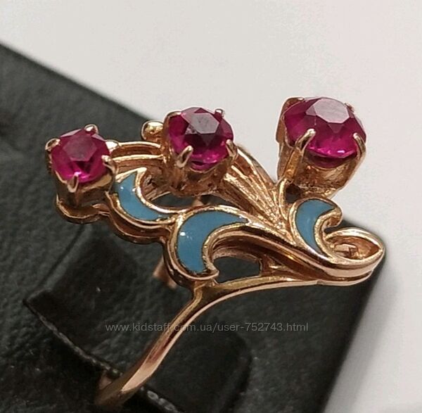 Золотое кольцо 583 пробы с эмалями